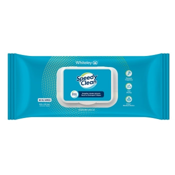 Speedy clean wipes supplied in a pack of 50 for quick surface and equipment cleaning. Suitable for medical and support areas, these wipes assist with maintaining hygiene standards. Supplied by Sumac Medical Supplies, they support daily sanitation wipes usage.